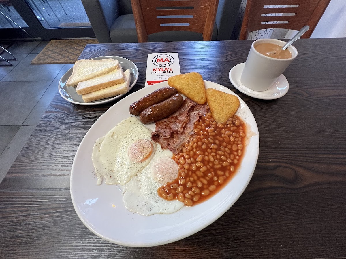 When it comes to breakfast, Myla’s Cafe & Restaurant knows how to do it right. One of the standout dishes you definitely shouldn’t miss is their Full English Breakfast. It’s the perfect way to kickstart your day, offering a filling and satisfying mix of classic ingredients, including eggs, sausages, bacon, beans, and toast, all cooked to perfection. If you're in the mood for something with a little more kick, pair your breakfast with their smooth and robust Caffè Latte to keep you energized.